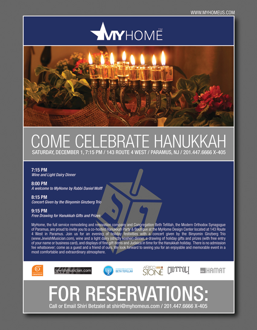 The evening will include Chanukah candlelighting, latkes, martinis, and live music by Yaakov Dov Miller, Binyomin Ginzberg and violinist Stephanie Kurzman, and musical guests.